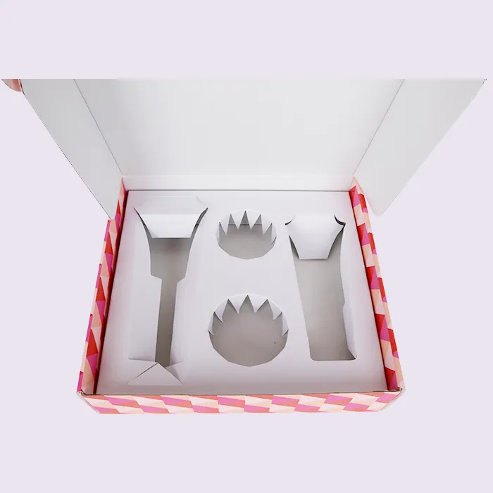 প্যাকেজিং সন্নিবেশের জন্য, আমরা বেশ কয়েকটি উপকরণ বিবেচনা করেছি: কাগজ, প্লাস্টিক, ফেনা এবং পরিবেশ-বান্ধব ছাঁচনির্মাণ সন্নিবেশ। পরিশেষে, আমরা তাদের কম দাম, দ্রুত পরিবর্তনের সময়, সরলতা, এবং পরিবেশ-বান্ধব, জৈব-অবচনযোগ্য প্রকৃতির জন্য পুনর্ব্যবহারযোগ্য কাগজ সন্নিবেশ নির্বাচন করেছি। ব্যক্তিগত যত্ন শিপিং বক্সের জন্য কাগজ সন্নিবেশ কাস্টম ছাঁচ প্রয়োজন হয় না, তাই কোন ছাঁচ ফি প্রয়োজন হয় না. Doyoupack-এর প্যাকেজিং ডিজাইনাররা নমুনার উপর ভিত্তি করে মাত্রা, স্লট, ট্যাব এবং ইন্টারলকিং বৈশিষ্ট্যগুলি কাস্টম-ফিট করে এবং তারপর ডাই-কাটিং এর মাধ্যমে সন্নিবেশ তৈরি করে। কাগজ সন্নিবেশ একটি এক-টুকরা ঢেউতোলা উপাদান-সাশ্রয়ী, সম্পূর্ণ বায়োডিগ্রেডেবল, এবং অত্যন্ত পরিবেশ-বান্ধব। এটি শুধুমাত্র পণ্যটিকে ভালভাবে প্রদর্শন করে না বরং সমর্থন এবং সুরক্ষা প্রদান করে। সবচেয়ে গুরুত্বপূর্ণ, এটি ইকো-মোল্ডেড সন্নিবেশ, প্লাস্টিক সন্নিবেশ, বা ধূসর বোর্ড সন্নিবেশের তুলনায় পণ্য সেটের সামগ্রিক ওজন উল্লেখযোগ্যভাবে হ্রাস করে। এক-টুকরা ঢেউতোলা সন্নিবেশ এবং এক-টুকরা ব্যক্তিগত যত্ন শিপিং বক্সগুলিও ফ্ল্যাট পরিবহনের সুবিধা দেয়।